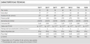 | Motores Nm | 10 Nm 17rpm, 20 Nm 17rpm, 30 Nm 17rpm, 40 Nm 17rpm, 50 Nm 12rpm |