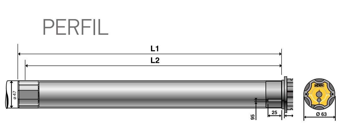 El motor tiene unas dimensiones compactas (longitud de 575 mm y diámetro de 50 mm), lo que facilita su instalación en la mayoría de los cofres de toldos disponibles en el mercado. Su diseño universal asegura una alta compatibilidad con diferentes marcas y modelos de toldos.