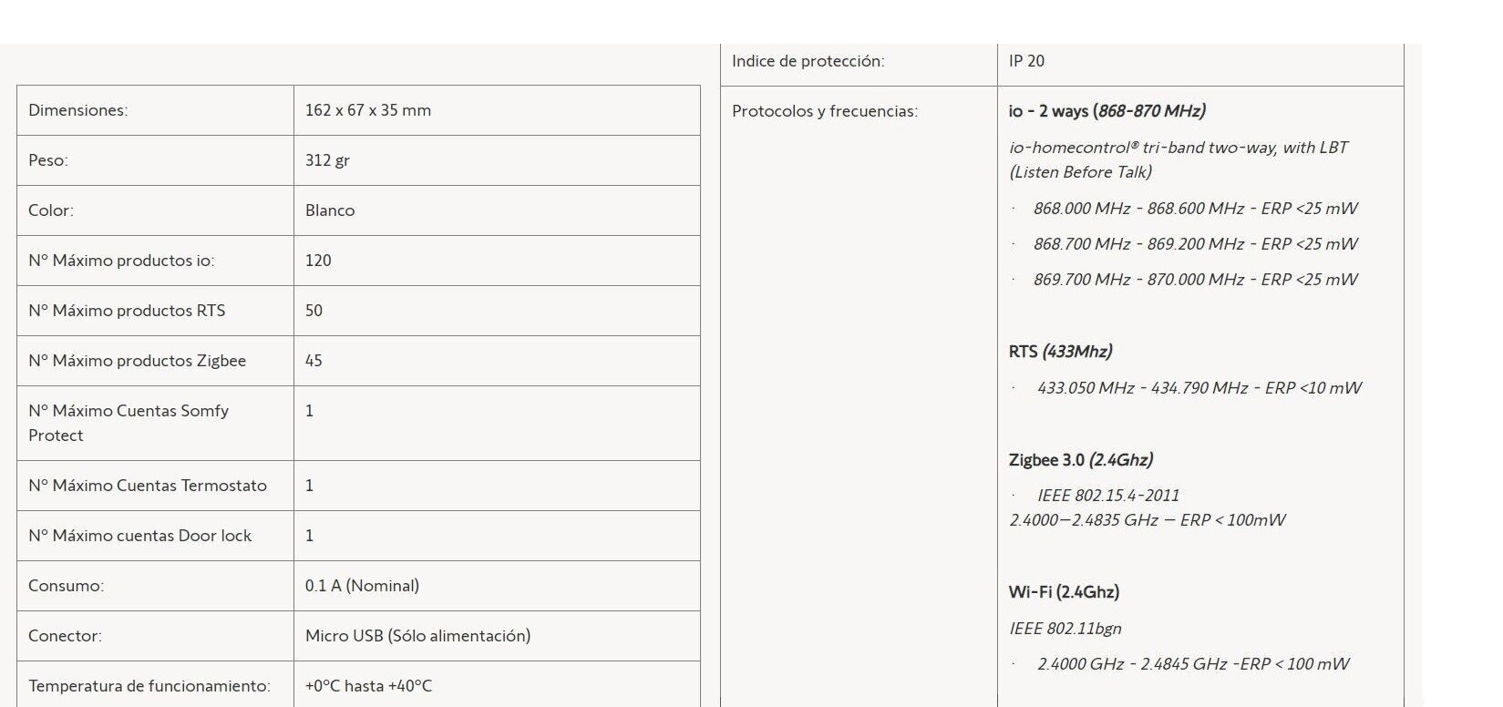 * La compatibilidad del producto con Apple Homekit puede variar según el país. Póngase en contacto con su representante local de Somfy para obtener más información.